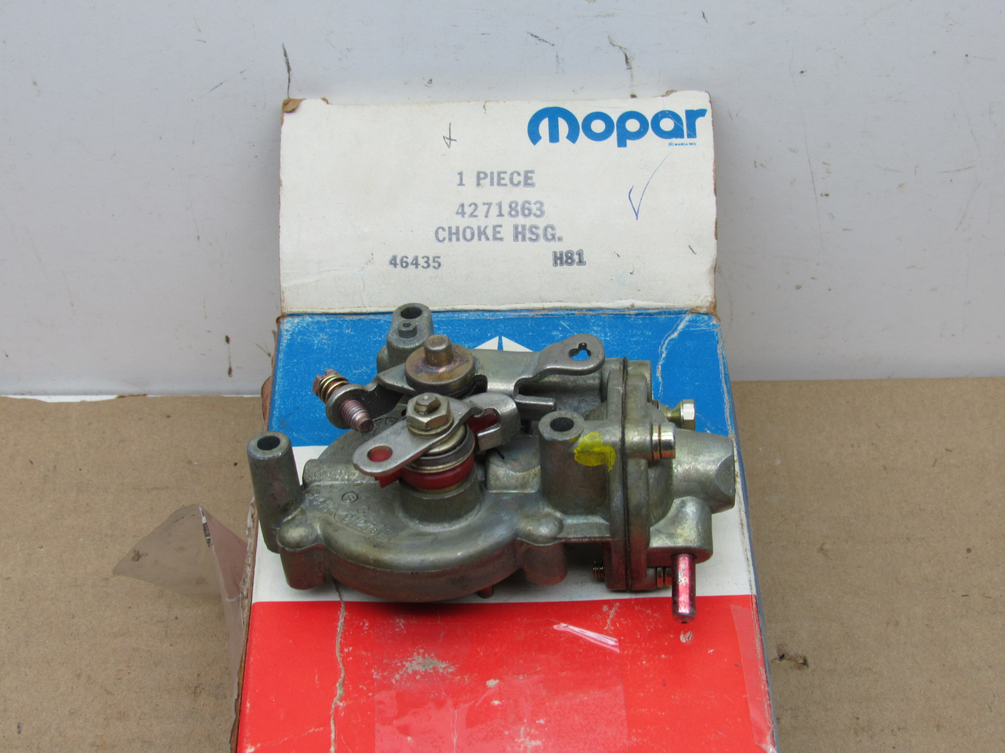 Fits 1981 L body Dodge Omni, 024, Plymouth Horizon, TC3 models with 4 cylinder 1.7 liter engines equipped with Holley 2 barrel model 5220 / 6520 carburetors. This is the choke housing with diaphragm assembly. It will fit these models with automatic and manual transmissions, with and w/o air conditioning. Fits Holley carburetor# R 9650, R 9652, R 9653, R 9654. Use on these models with N94 option; lean burn (electronic spark advance). Complete assembly, very good condition. 14-1000.