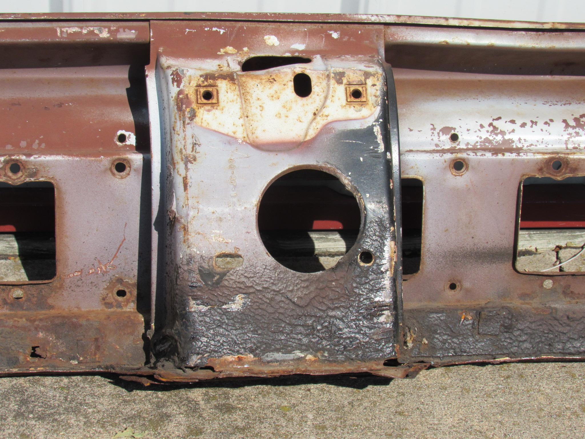 Fits 1970 E body Dodge Challenger, R/T, SE models. This is a used original section,the deck lid opening lower tail lamp panel,with the lock catch support attached. Good usable condition,it has some of the trunk floor panel still attached on the bottom,and some of the quarter panel sections on the left and right sides. No damage collision damage,and It does not have any bad rusted areas,the spot welds have been drilled out for removal on the rear trough partition. The trunk lock cylinder hole is in good condition,and the tail lamp housing mounting supports are all solid. 23-19-74 / 23-34-167.
