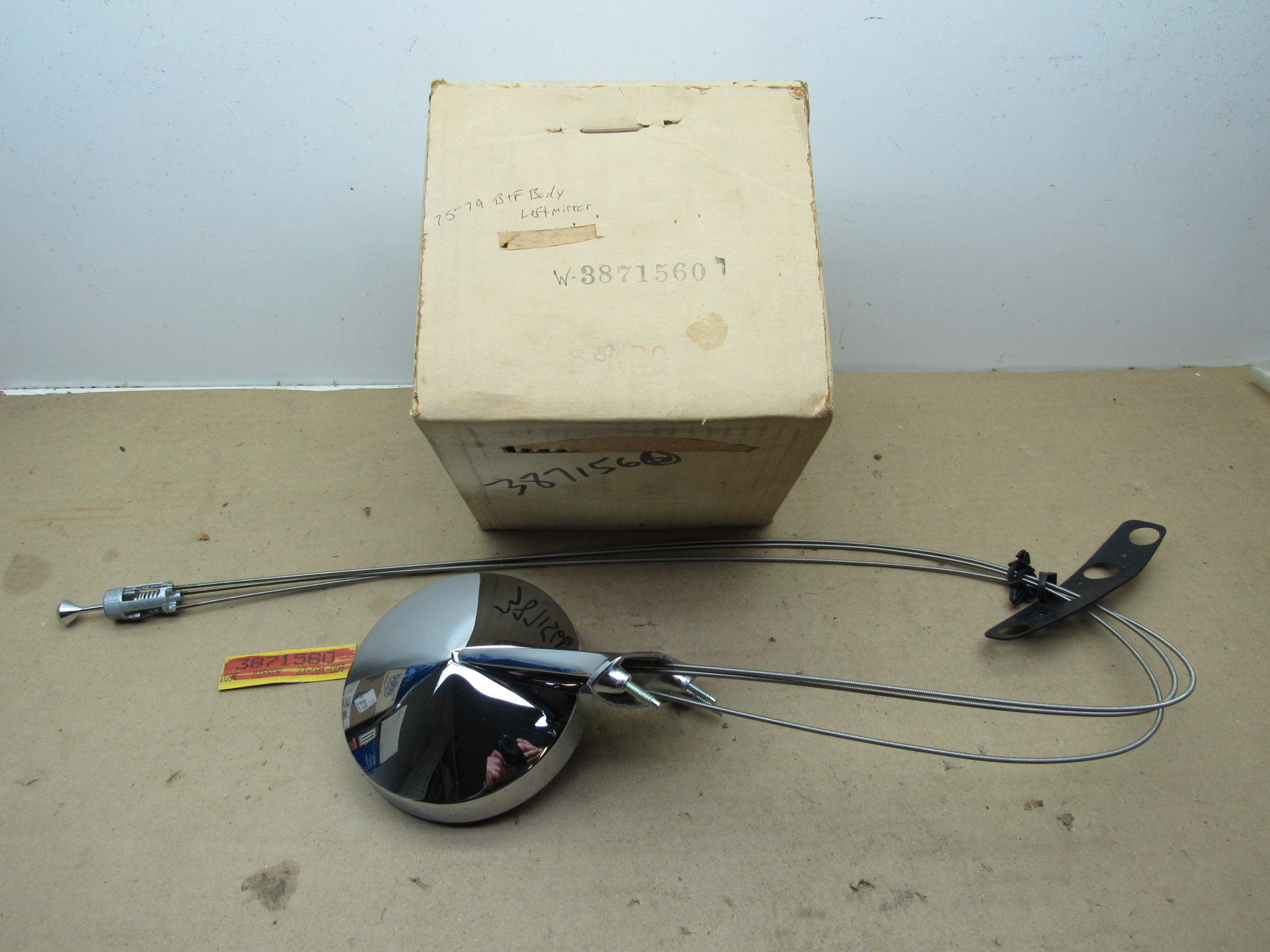 Door Outside Mirror Pkg# 3871560 – LH – Chrome Remote – B – F – Body – 1976-80 – NOS