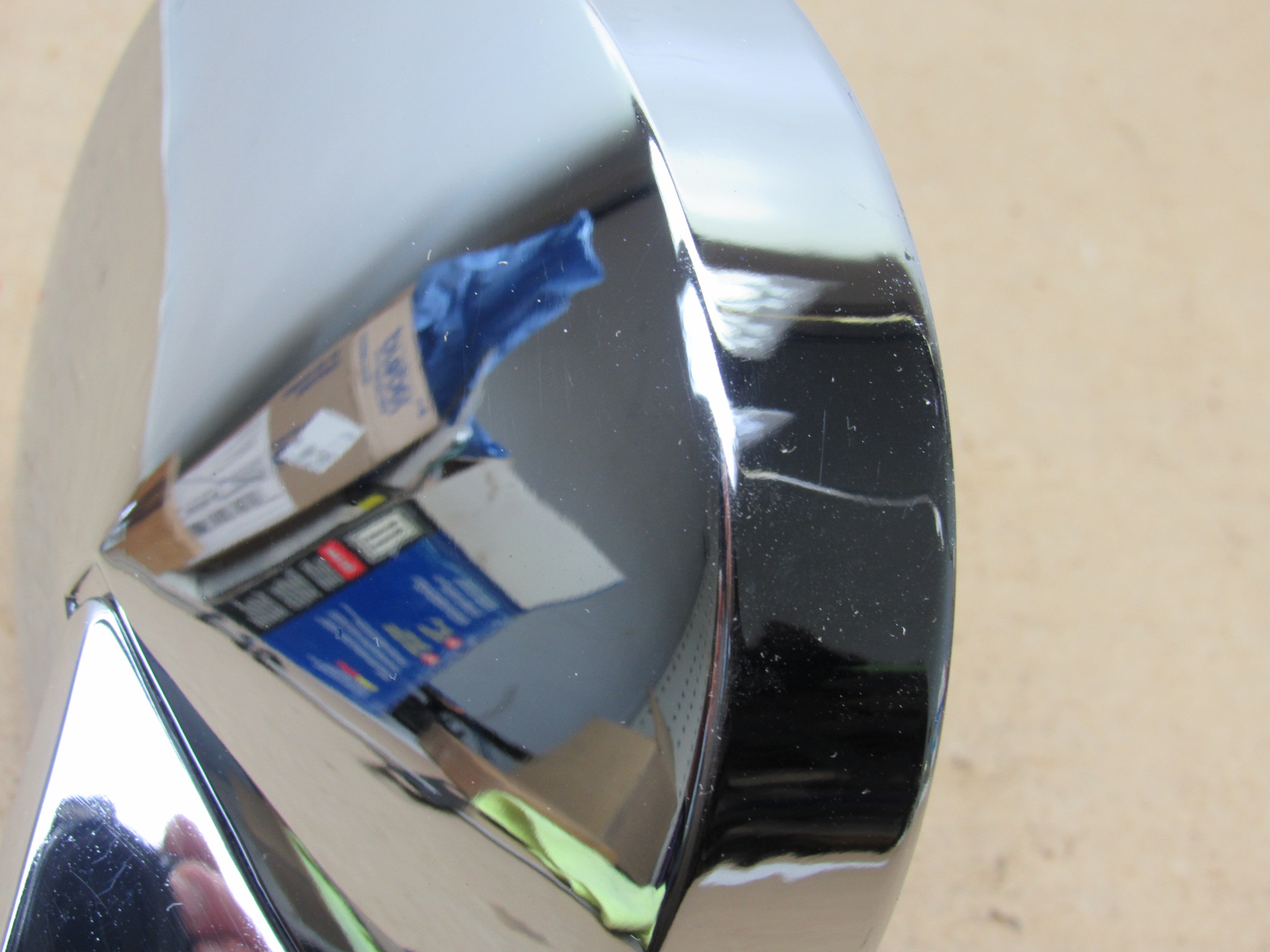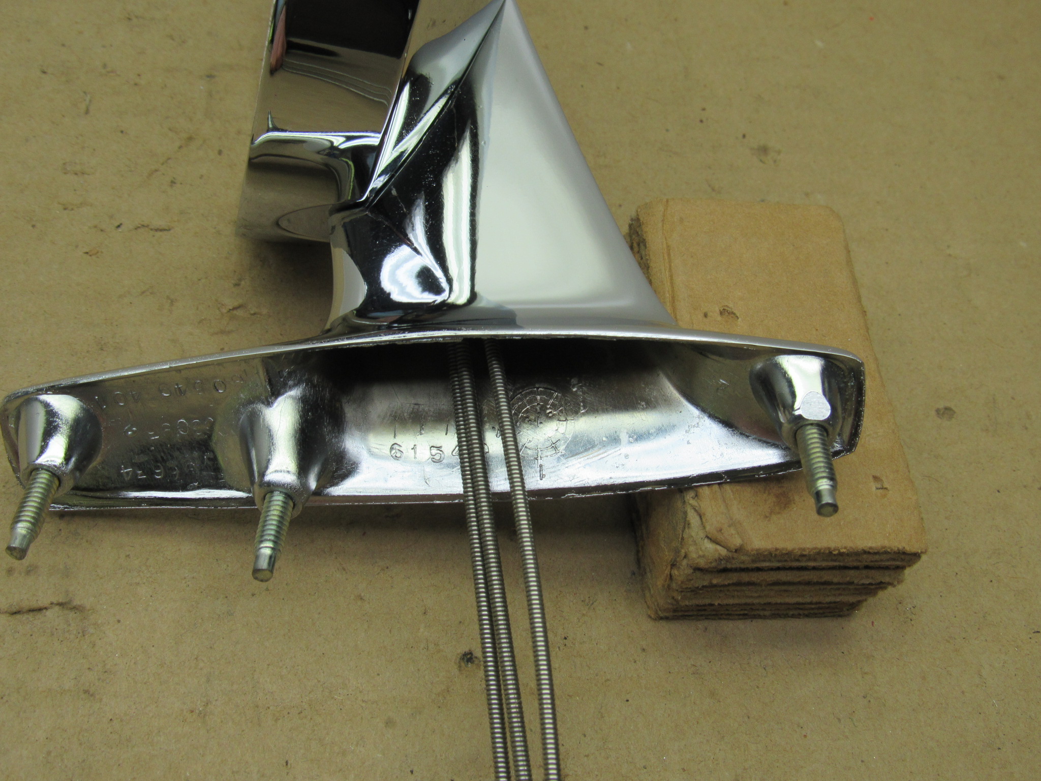 Fits 1976-78 B body Dodge; 1976 Coronet, 1976-78 Charger SE, Plymouth Fury, Chrysler Cordoba, 1976-80 F body Dodge Aspen, Plymouth Volare, all 2 and 4 door models. This is the left side door outside chrome remote control mirror package, it is the round style. Very good condition, the chrome is nice, no pitting, bright and shiny, and the mirror lens is not scratched, package includes the mirror assembly with adjustable cable, chrome knob, plastic base gasket, and 3 cable retainers. 23-21-3.