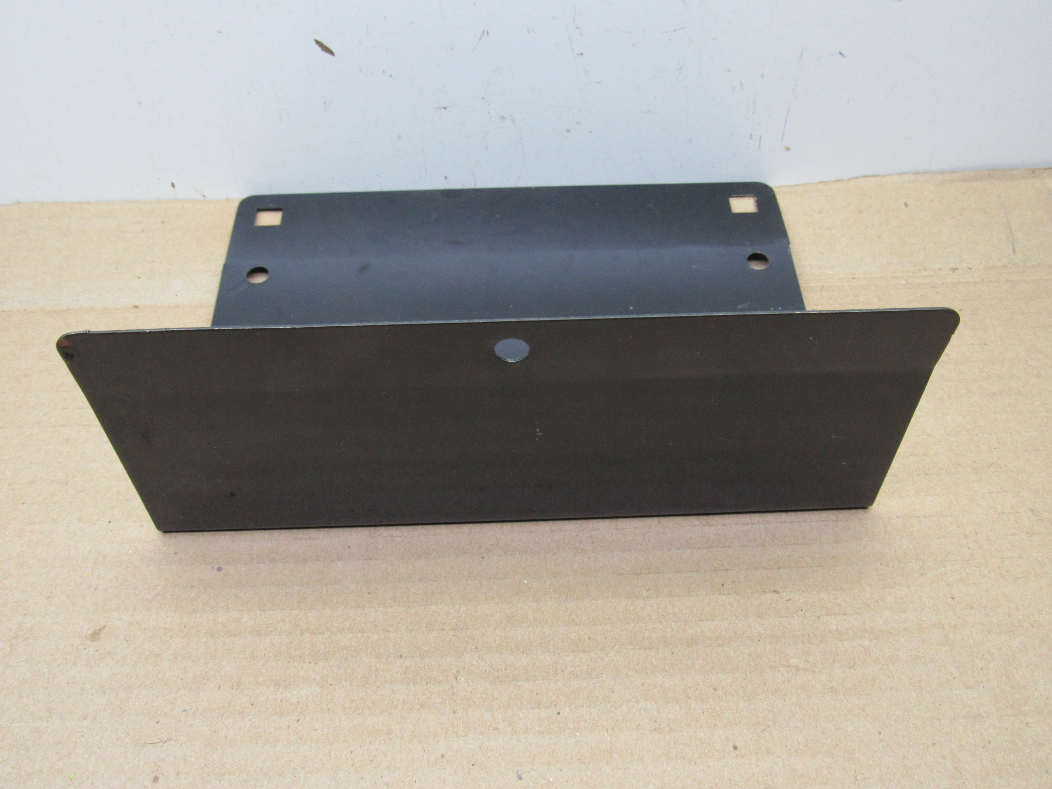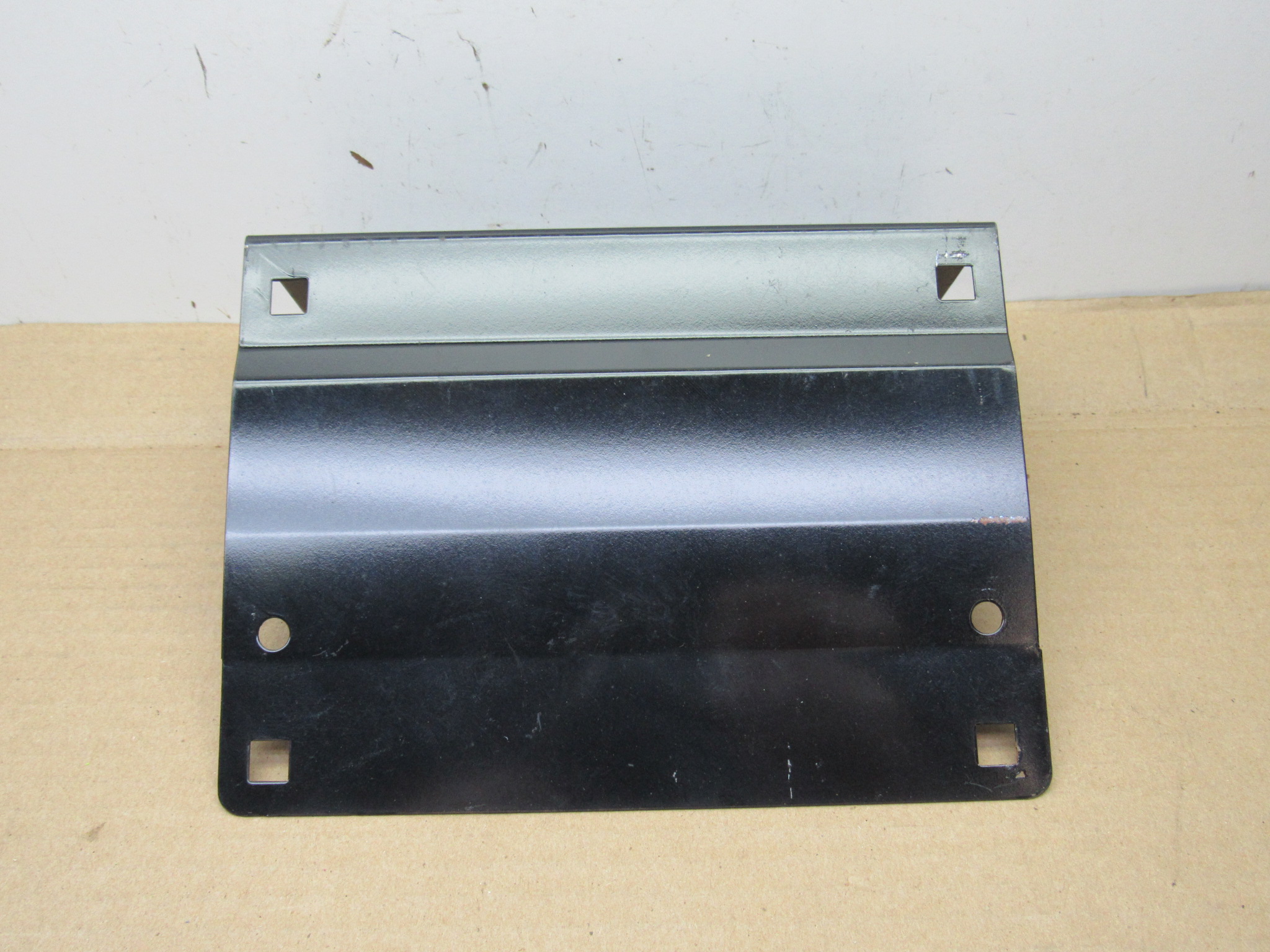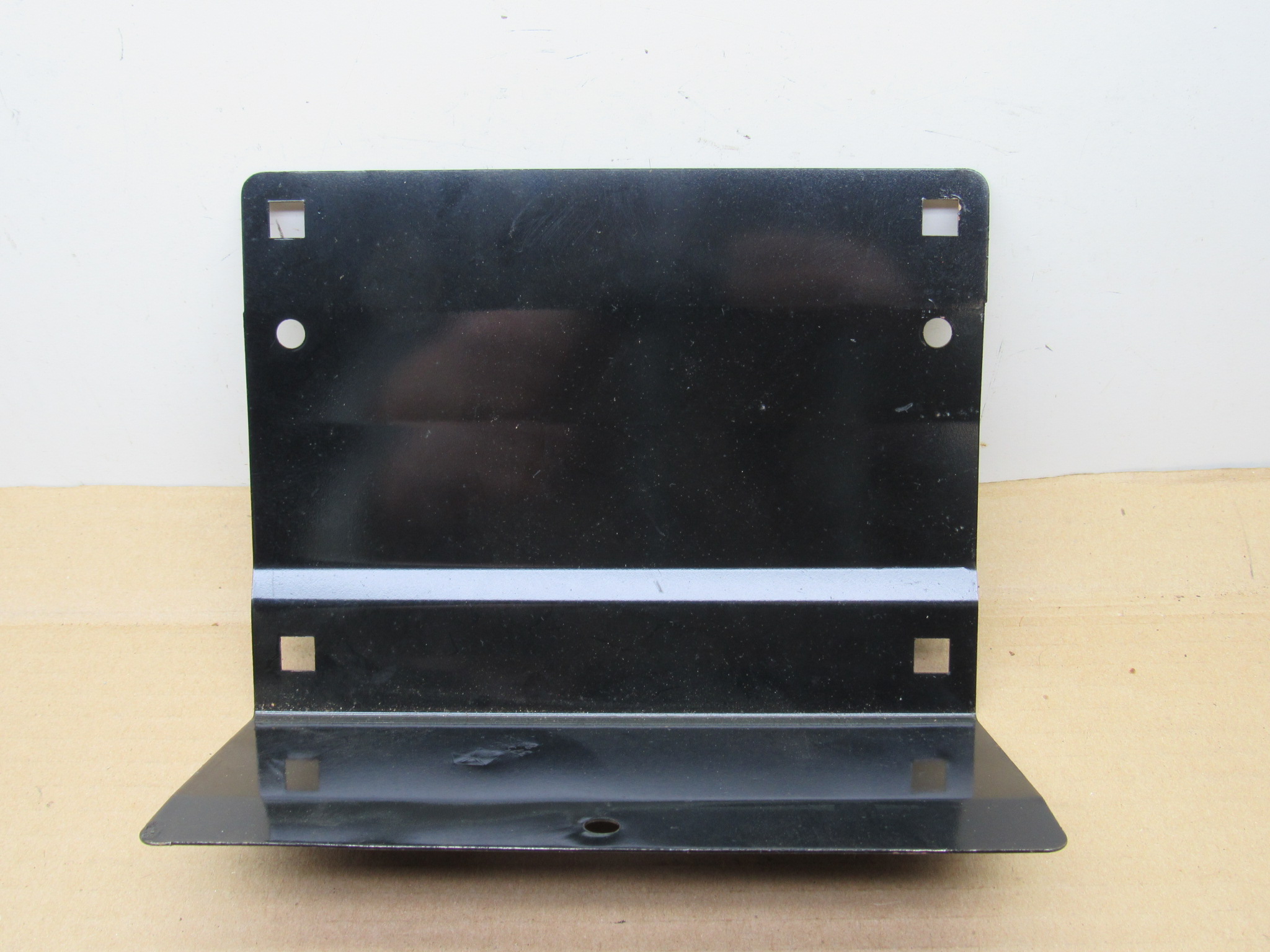 Fits 1974-76 A body Dodge Dart, Swinger, Special, Sport, Custom, SE models. Use on 1974 4 door models without non shock absorbing bumper. This is the front license plate mounting bracket, it has 3 round holes for mounting, and 4 square holes for attaching the plate, very good condition, no rust or damage. 8-47-8.