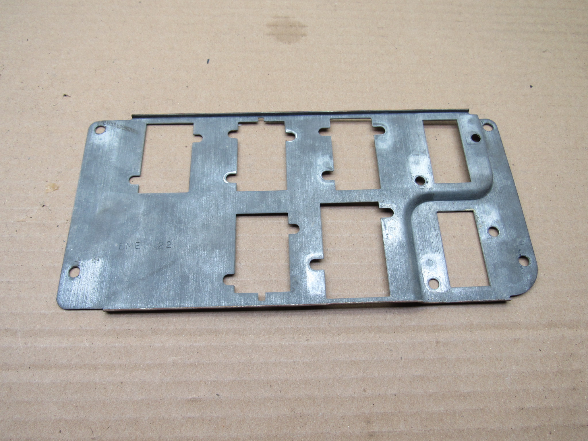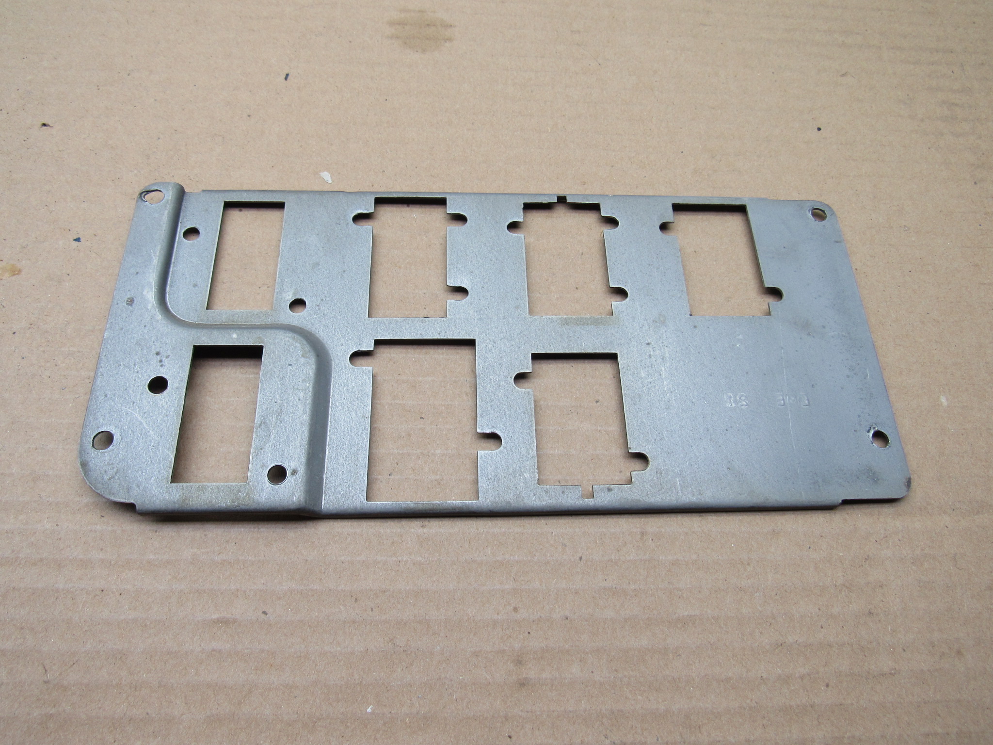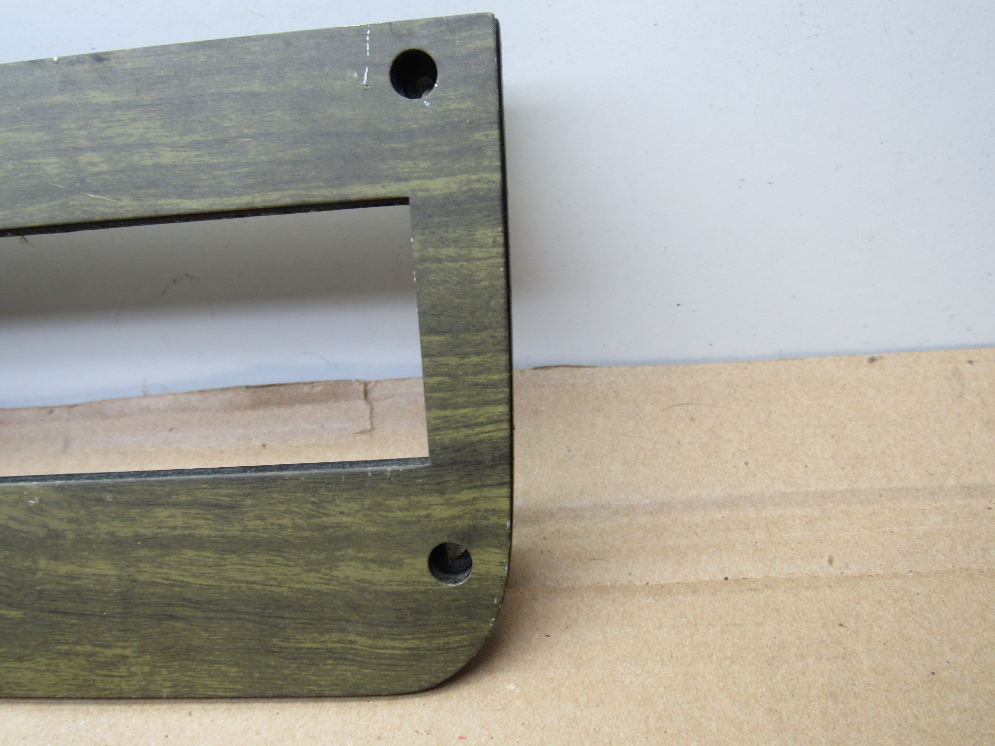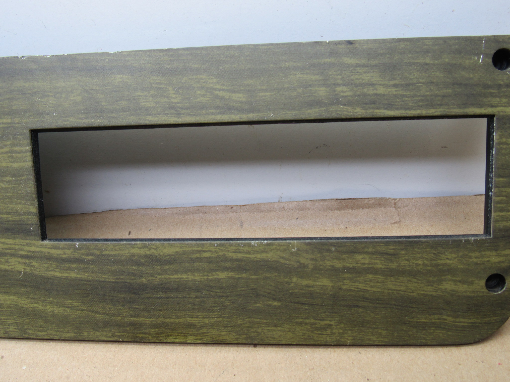 Fits 1970 C body Dodge Polara, Custom, Monaco, 500 models, all 2 and 4 door except convertible and station wagon. This 3 piece package includes the instrument panel radio bezel with overlay / wood grain trim plate, instrument panel switch mounting trim bezel with overlay, and the metal switch trim panel reinforcement plate. These are all used original items, good condition, the plastic is not cracked, and all the mounting provisions are nice. The 2 trim bezels have the wood grain overlay on the front, there is some minor wear from use but overall good condition. The switch bezel has 5 switch provisions; headlamp / lights, washer, wiper, panel dimmer, rear window defogger. It has the “DODGE” lettering in the center where the column shift automatic transmission indicator will mount and mate up to the radio bezel. Use on these models with AM / AM-FM radio, w/o tape player. 23-33-135.