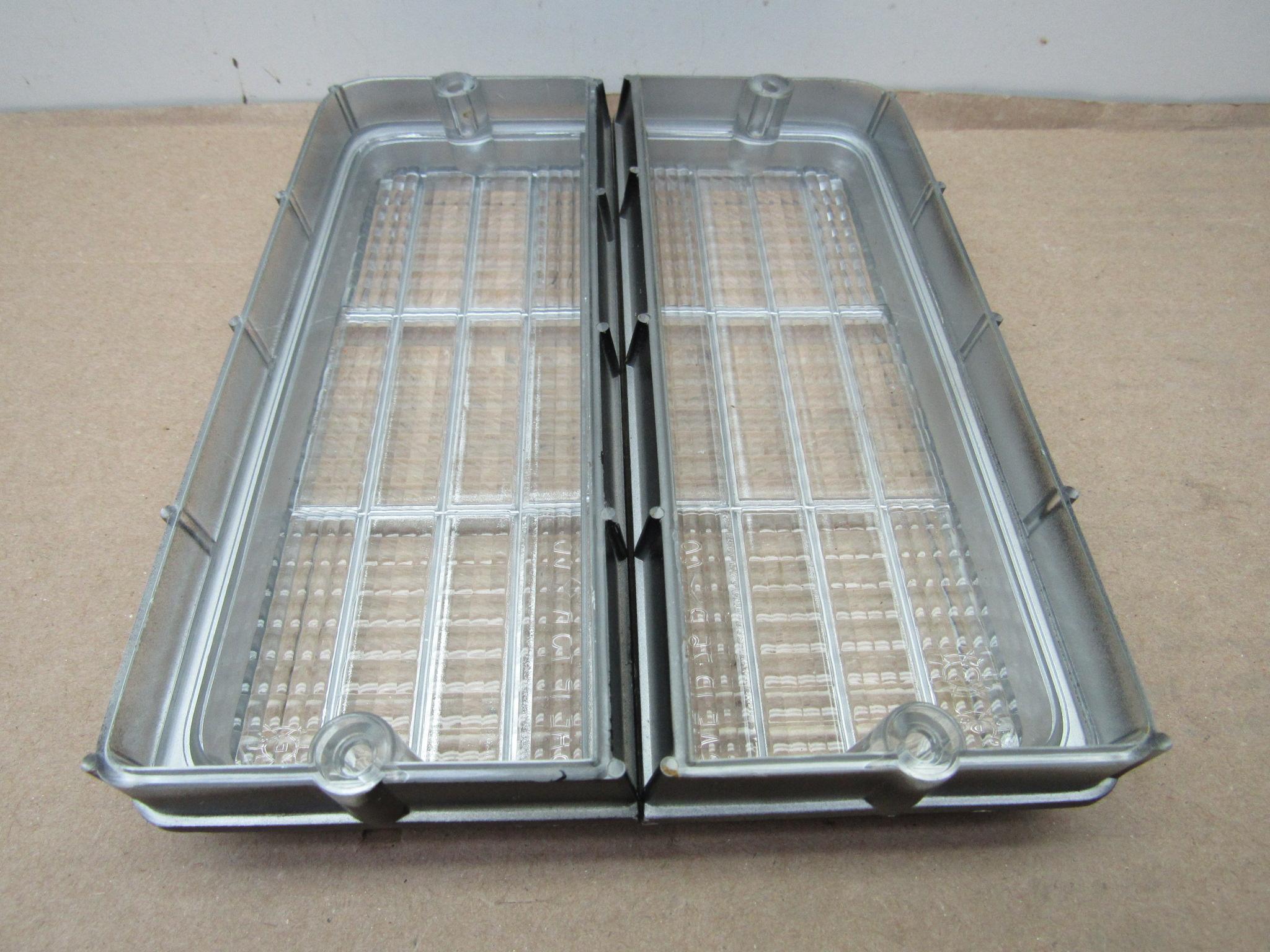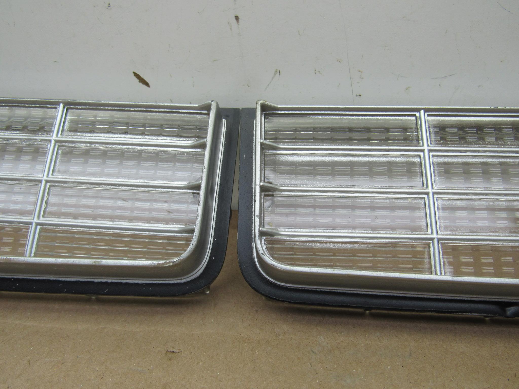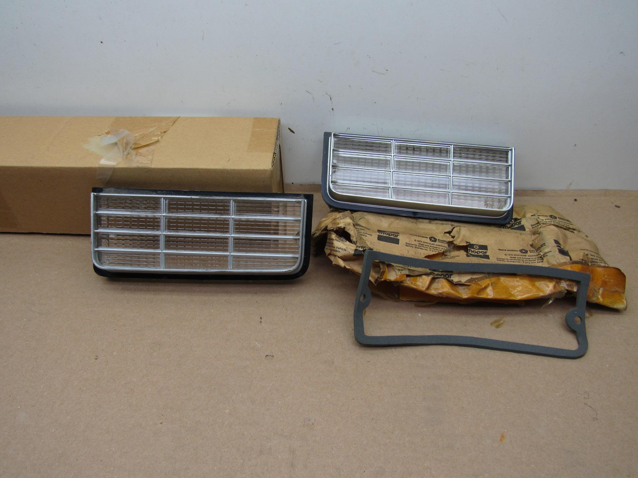 Fits 1975-76 B body Plymouth Fury, Fury Suburban, Sport Suburban, Sport Fury, 1975 Road Runner models. This is a pair; 1 left side, and 1 right side clear park and turn signal lamp lenses, 1 gasket is included. Very good condition, no cracks or chips. 8-50-334.
