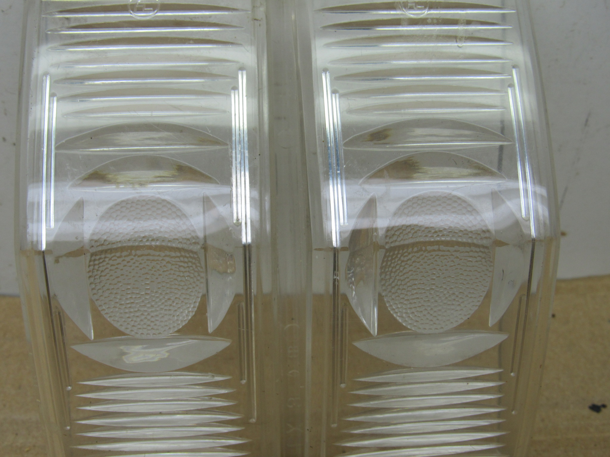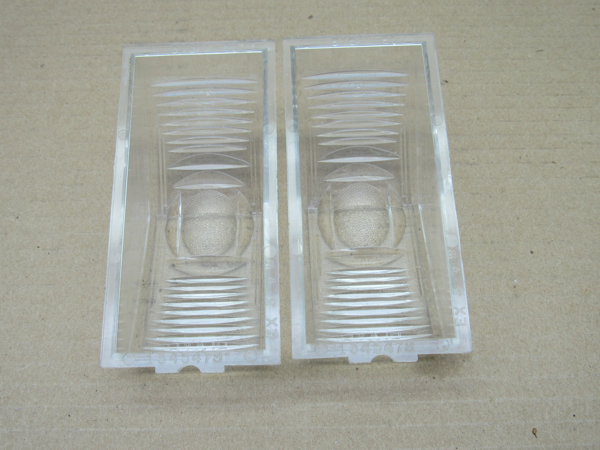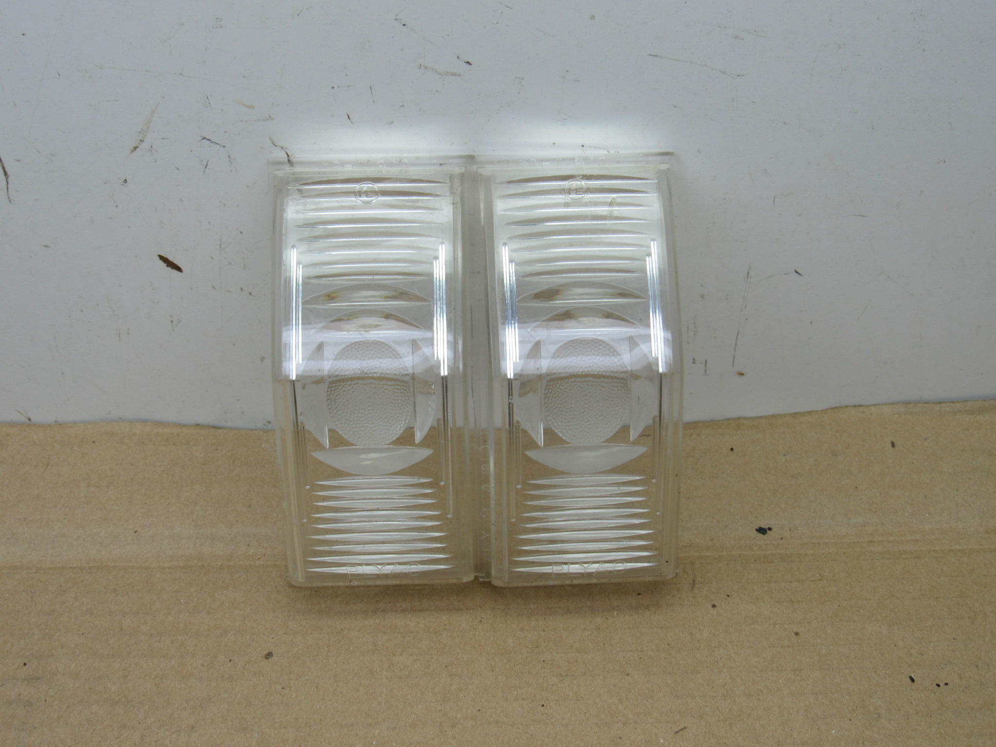 Fits 1951-52 Plymouth Concord Deluxe, Cambridge Deluxe, Cranbrook Special Deluxe models. This is a pair (2) of front park lamp lenses, they are clear, and in good condition. No cracks or chips. 8-50-335.