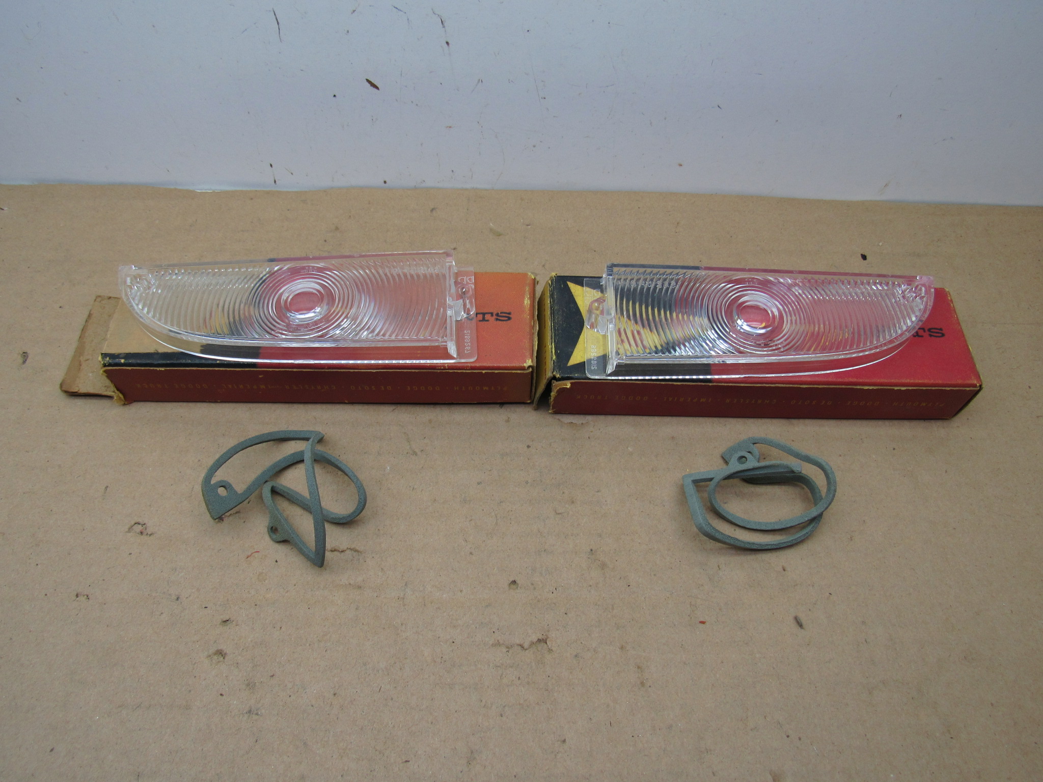 Parking Lamp Lens and Gasket Pkg# 2275211 / 2275212 – Clear – Pair – Valiant – 1961-62 – Belvedere – 1962 – NOS