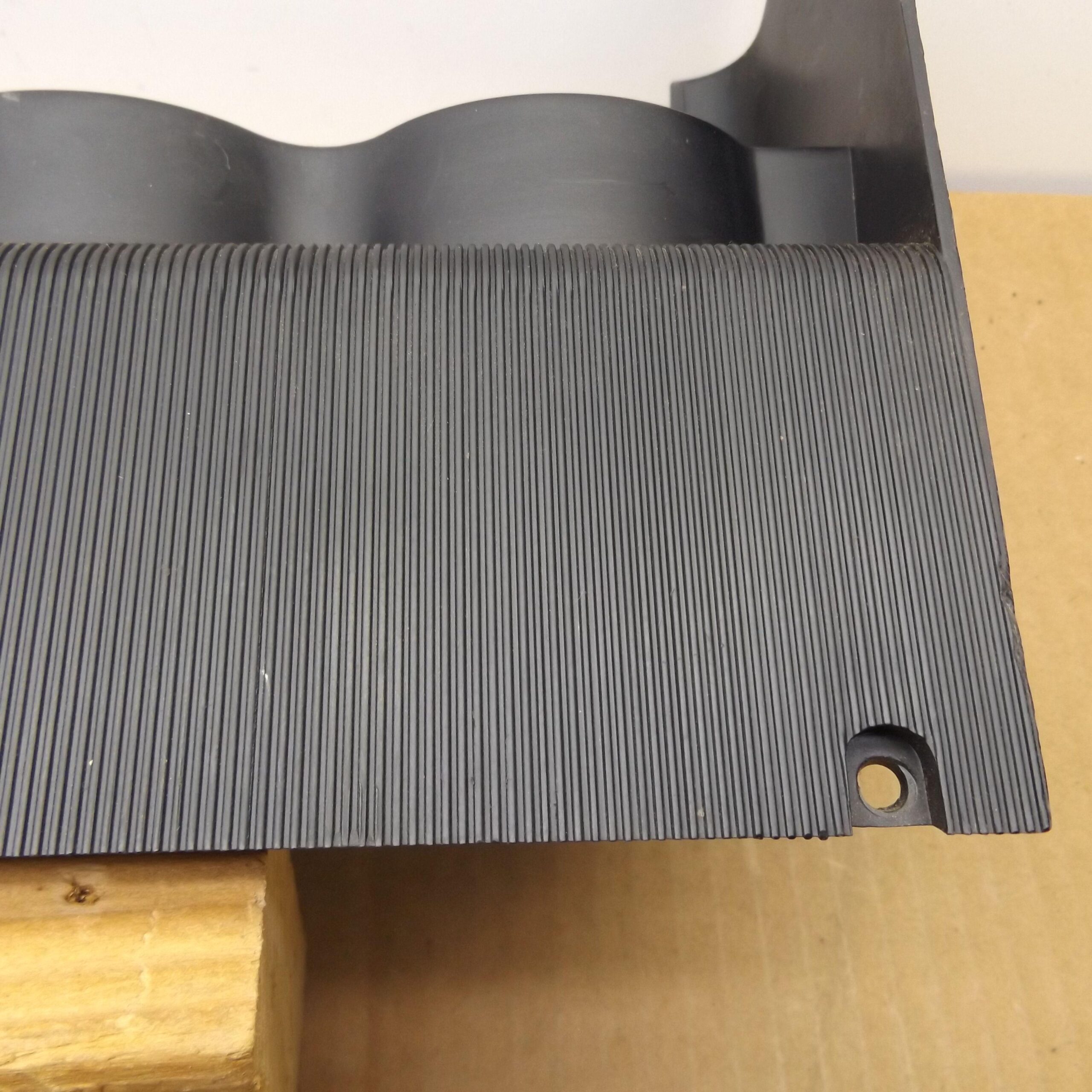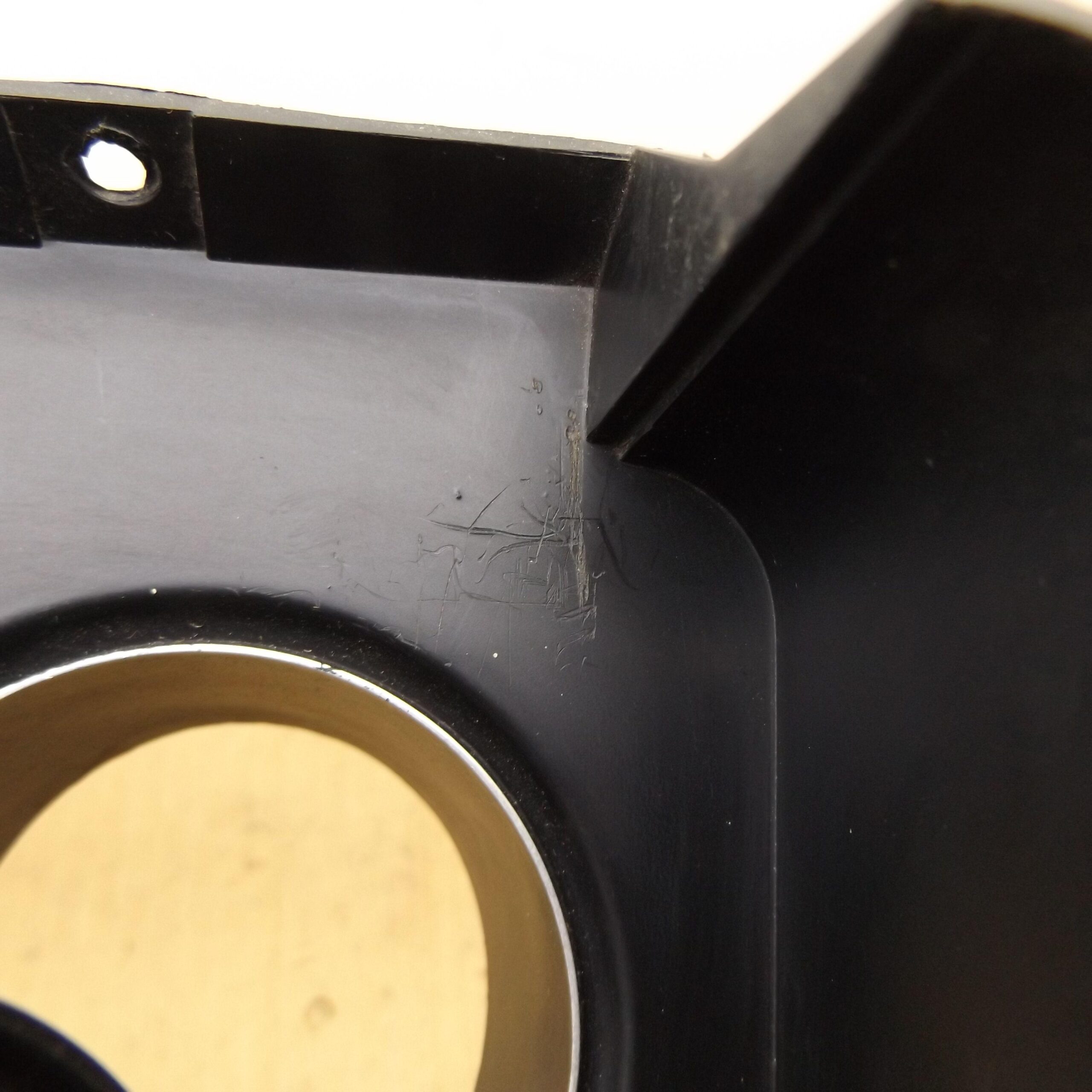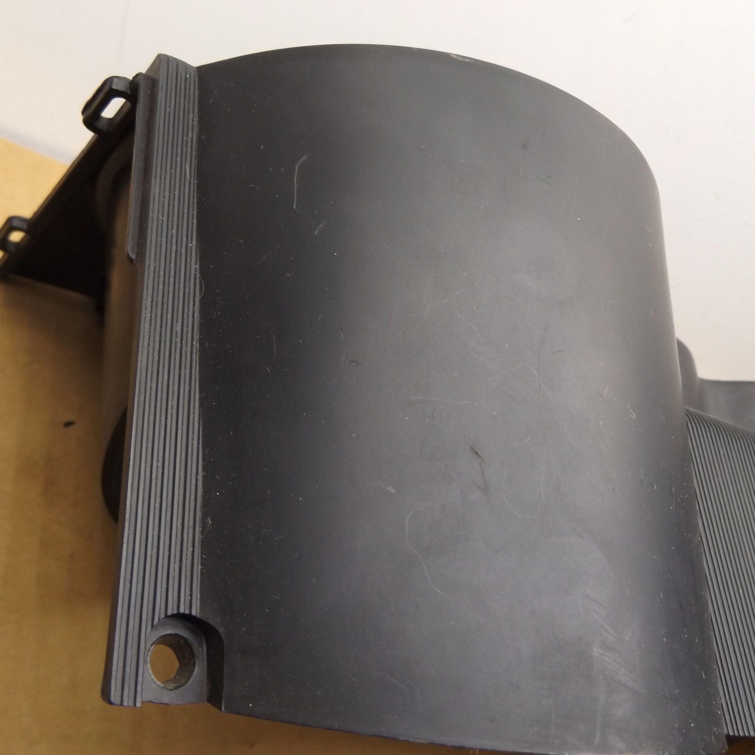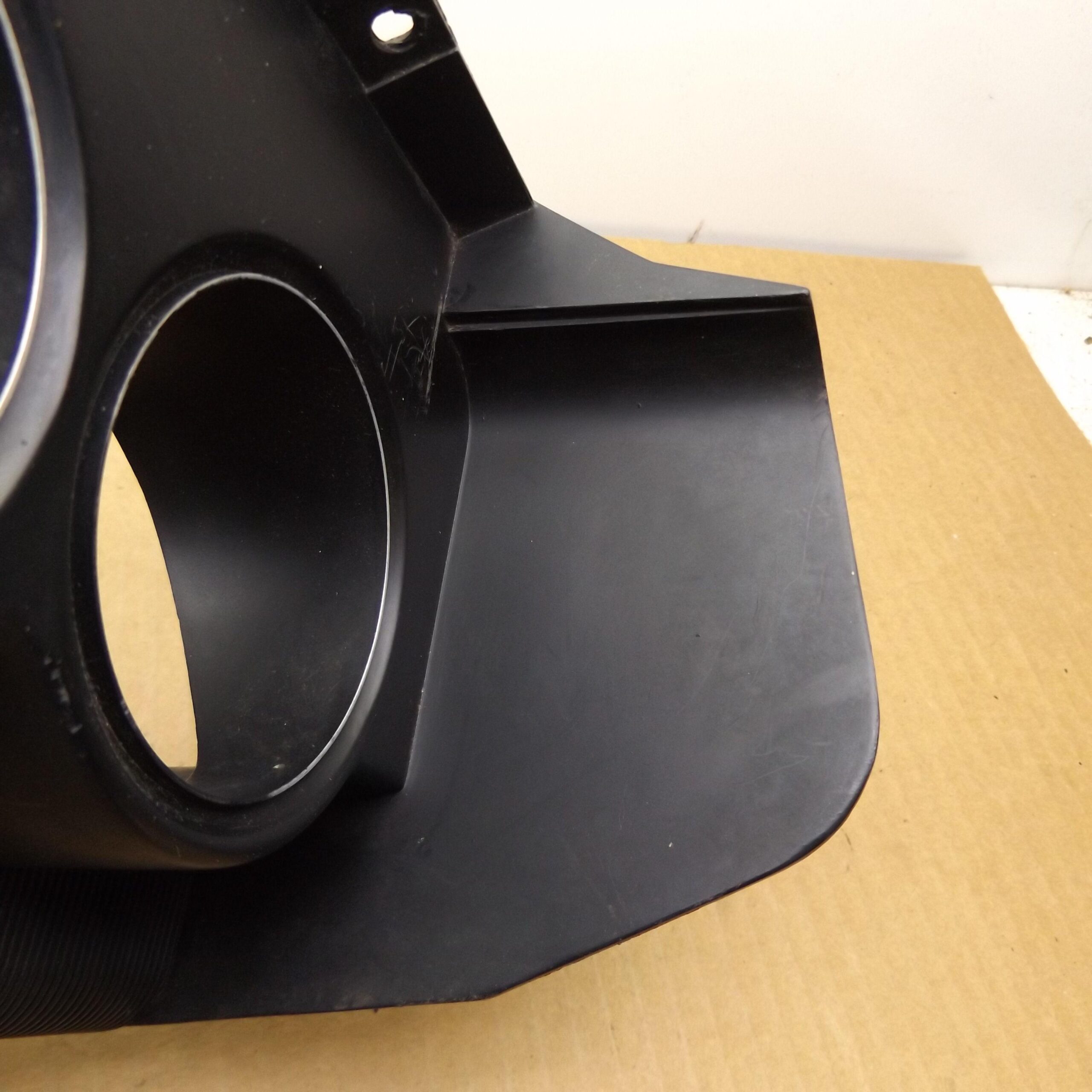 Fits 1970 E body Dodge Challenger. This is the black plastic speedometer and instrument cluster bezel. It mounts over the gauge cluster. This is a used original item,it is in good condition. No cracks,and all the mounting tabs and holes are not broken. The bottom and top side do not have the usual warping from UV sun rays and hot interiors. This is one of the nicest used bezels you will find. It includes the 3 red indicator lenses;brake,oil,hi-beam. This is the finned unit,with the large speedo,and 3 small round gauges to the left,use on models with standard dash,not with rallye. This unit is an un-restored item. It has some minor scratches,but overall very nice. 8-37-90.