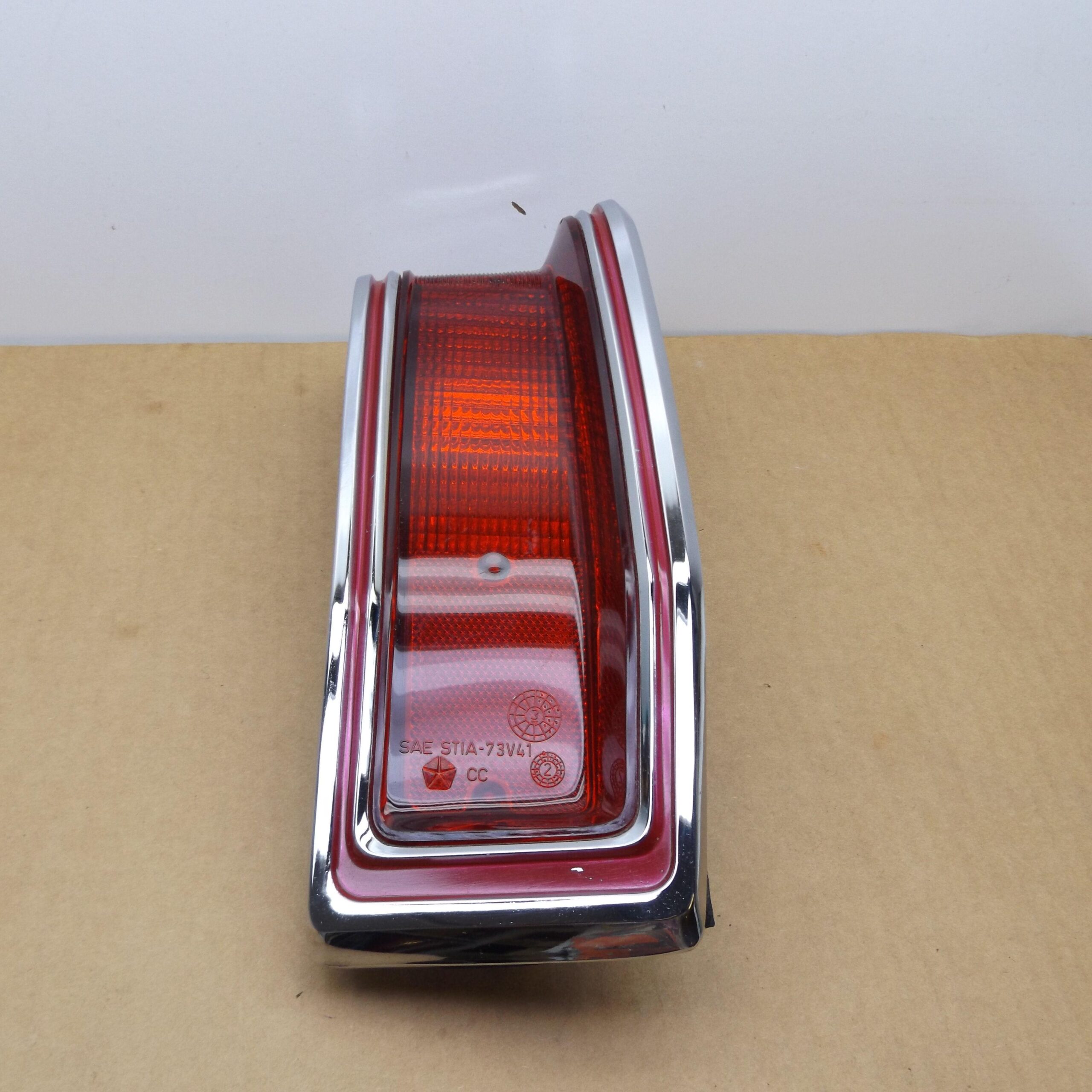 Fits 1973 A body Plymouth Valiant 4 door sedan models. This is the right side tail lamp assembly. Nice chrome and lens, no damage. 8-55-7.