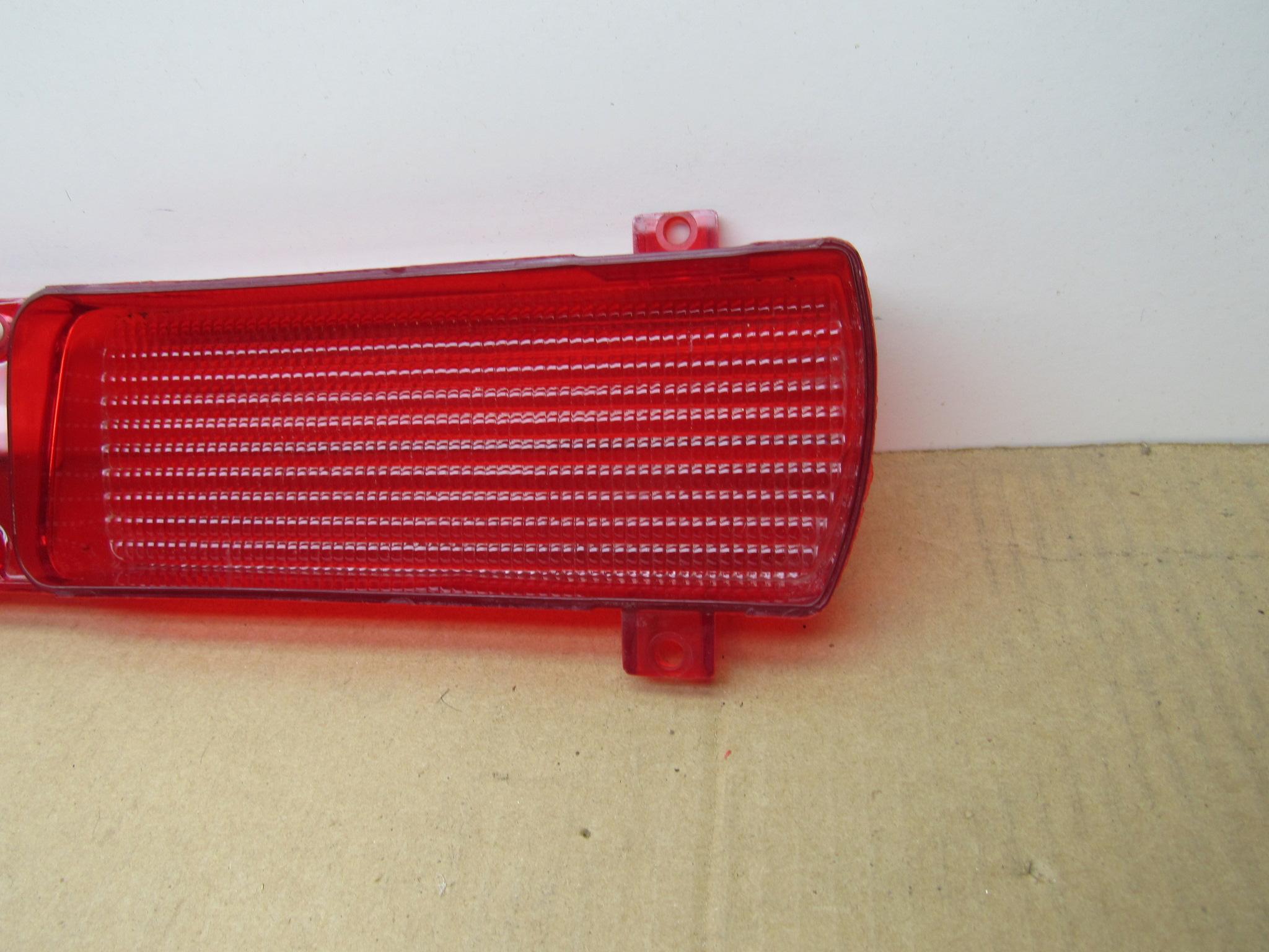 Fits 1971 E body Dodge Challenger, Challenger R/T models. This is the left side lens. Red lens with center clear section for back-up. This is an nos item,it has a small crack on the lower center area,(see images for location),it is approx 1″ long. Once the lens is installed,it will not be noticeable. The overall condition is very good. 8-55-194.