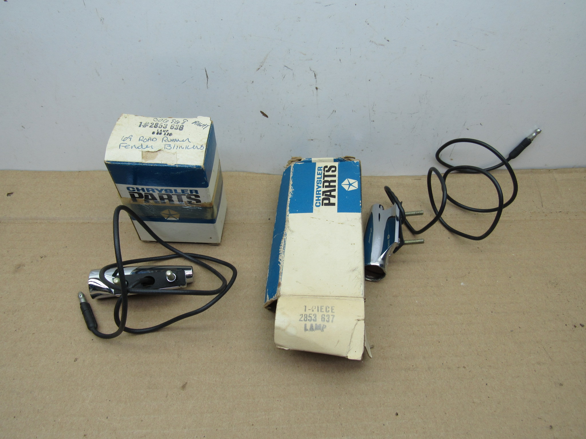 Turn Signal Indicator Lamp# 2853636 / 2853637 – Pair – A – B – C – Body – Plymouth – 1968-69 – NOS