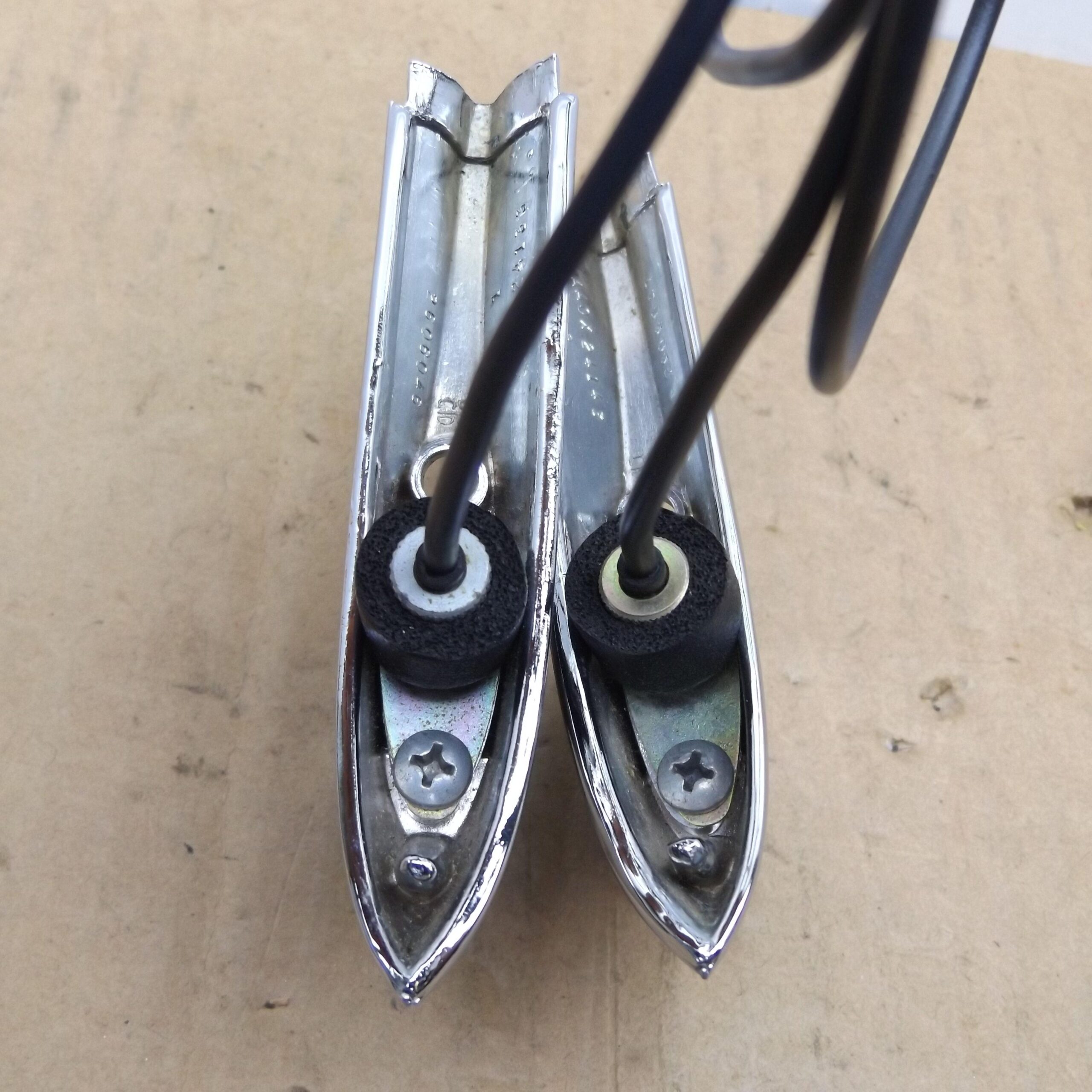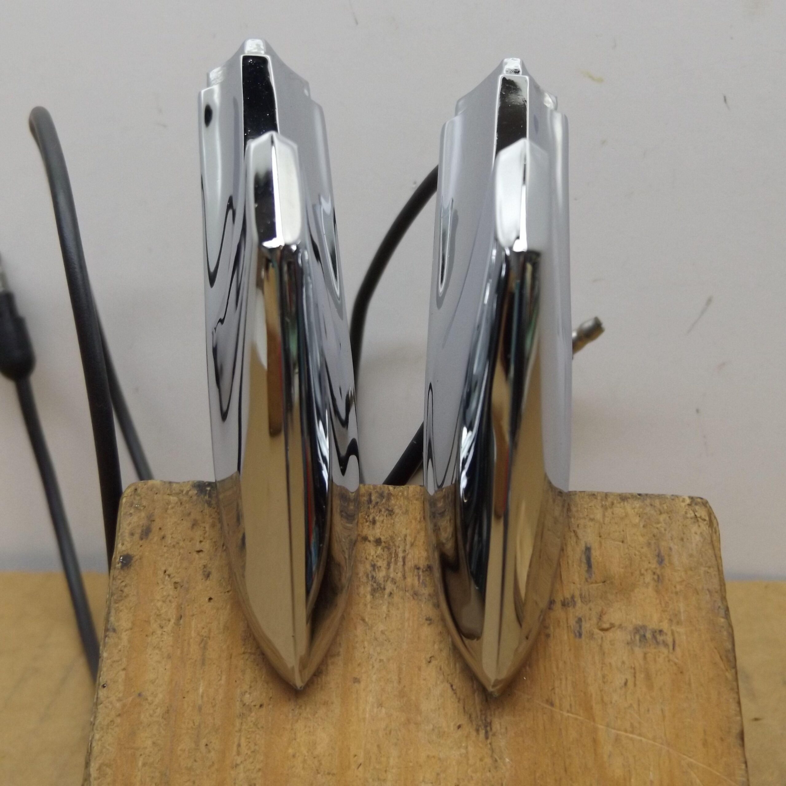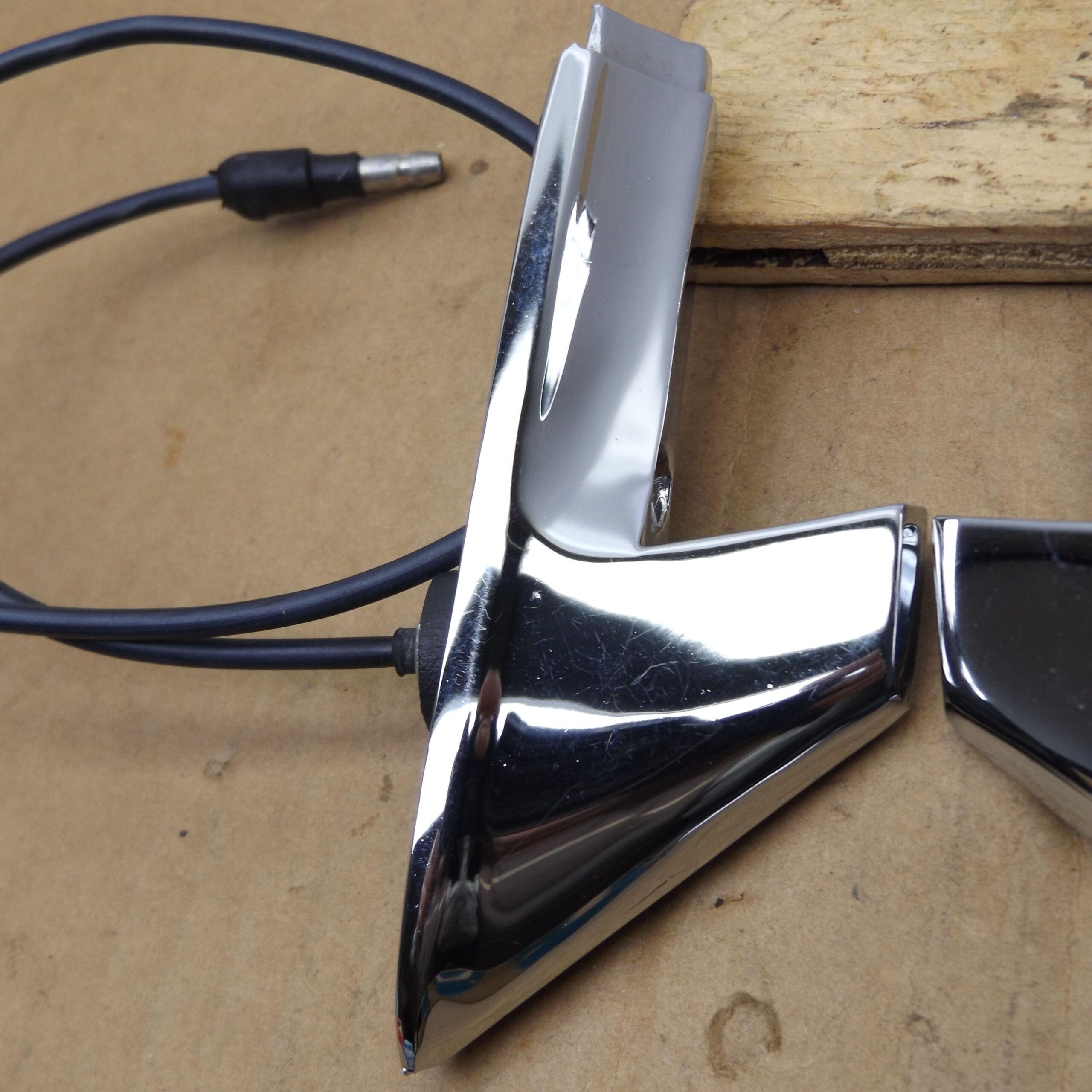 Fits 1966 B body Plymouth Satellite models. This is a pair; 1 left and 1 right side front fender mounted turn signal indicator lamps. Excellent condition, the chrome is bright and shiny, they include the chrome bezel / cover, amber lens, wiring, socket and bulbs. 8-50-175.