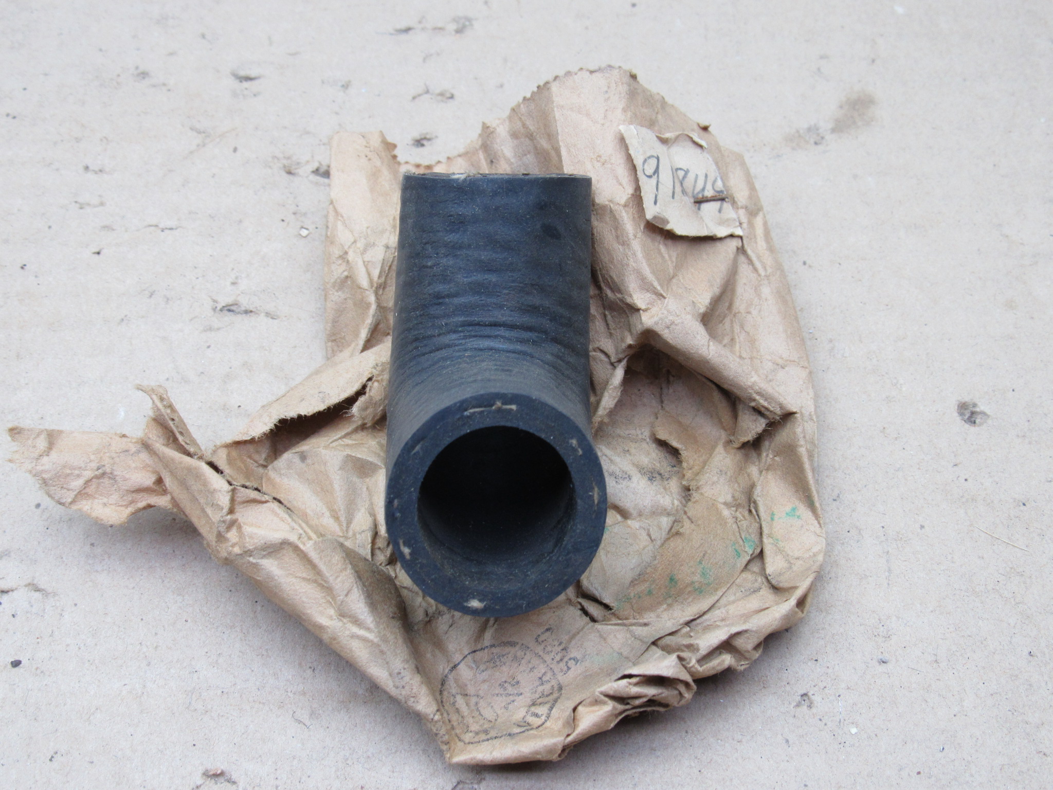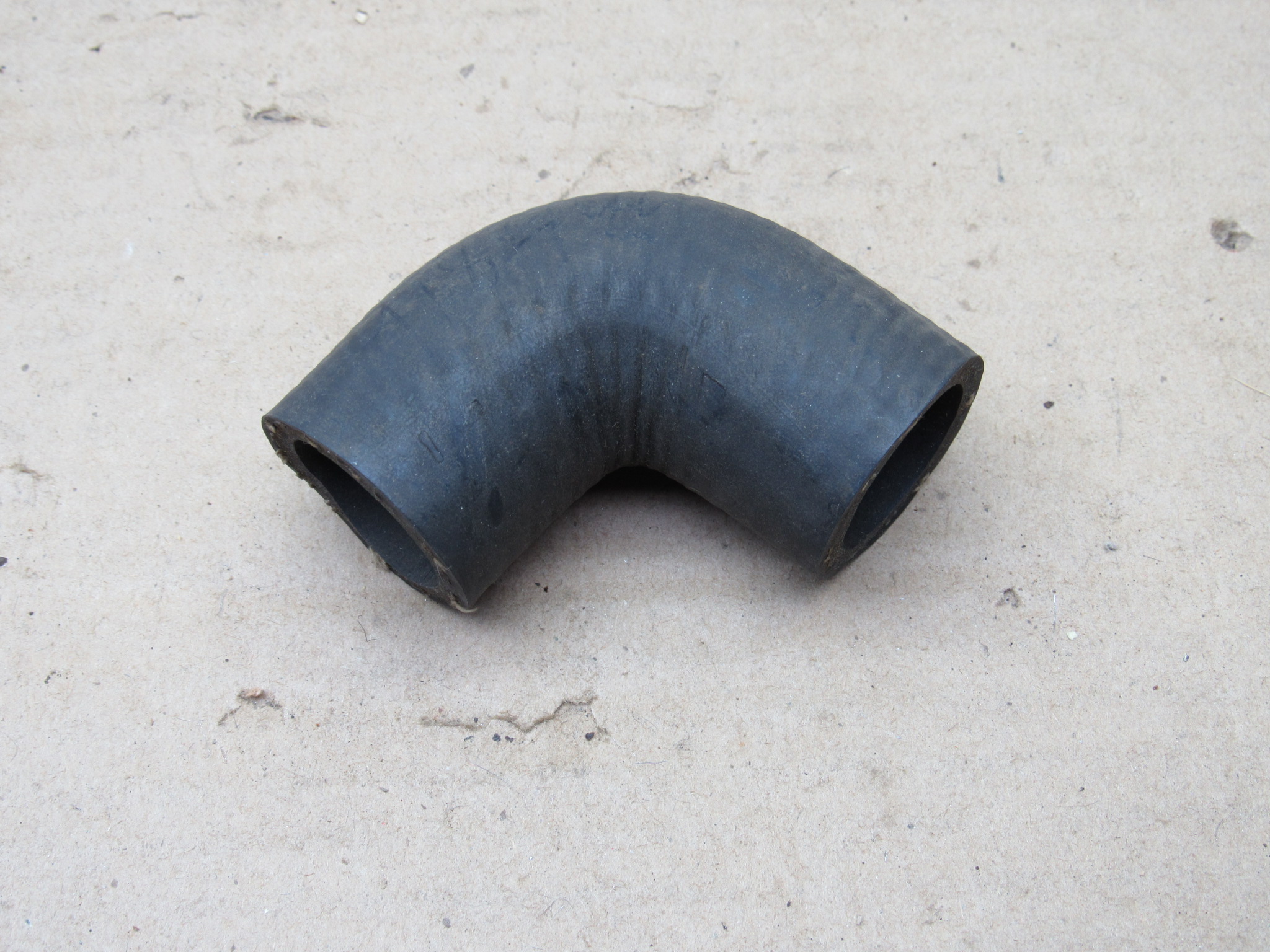 Fits 1939-40 Dodge Truck 1, 1 1/2 ton models. This is the water pump bypass hose, it is an nos replacement Mopar item, it does not have the part number and logo stamped on it, part number on tag. 90 degree angle, it measures 1 3/6″ O.D., and 15/16″ I.D. This item may fit more years and models then listed.