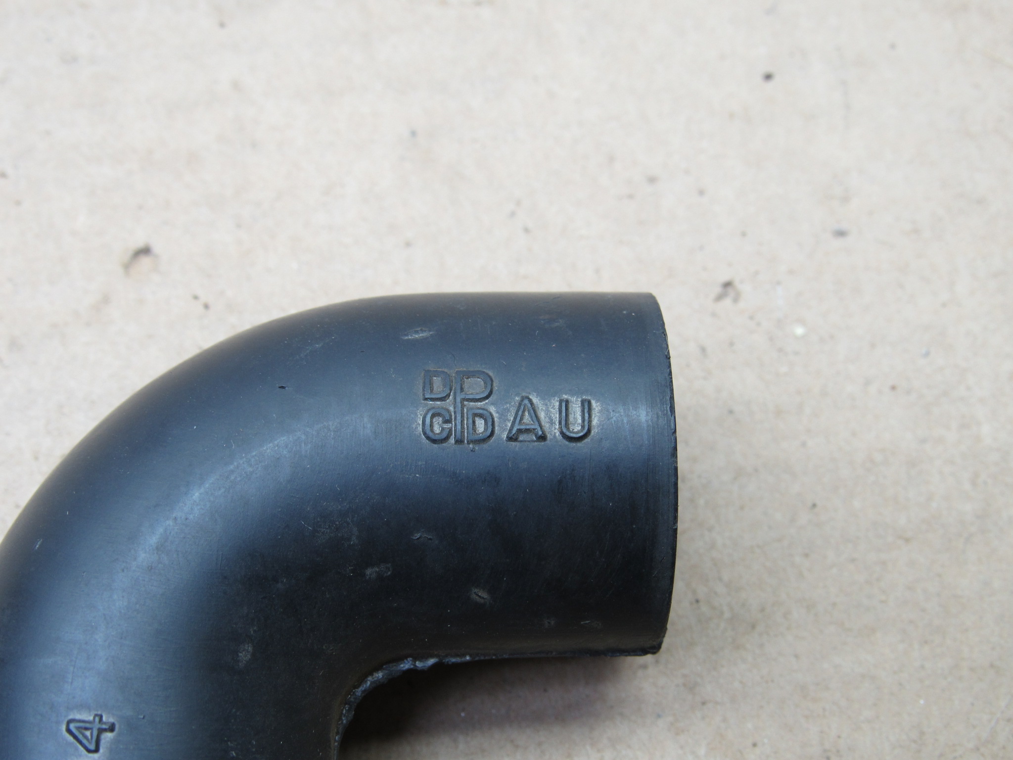 Fits 1939-40 Dodge Truck 1, 1 1/2 ton models. This is the water pump bypass hose, it is an nos Mopar item, it has the part number and logo stamped on it. 90 degree angle, it measures 1 3/6″ O.D., and 15/16″ I.D. This item may fit more years and models then listed.